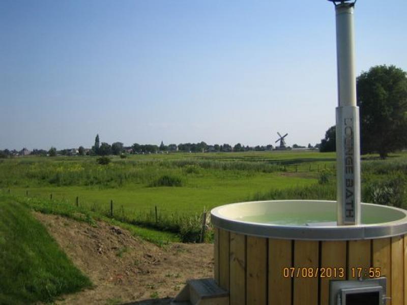 Op een bungalow park in Aalst (Gld) is bij het vakantie huis een hot tub geplaatst op een lager deel met verstevigde ondergrond. Het tuinontwerp zal binnenkort beginnen maar het Lounge Bath staat vast. Prachtige plaats met mooi uitzicht.